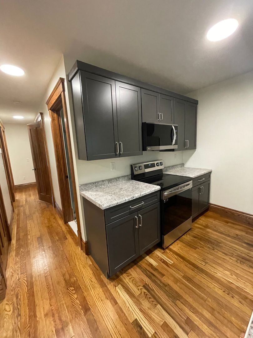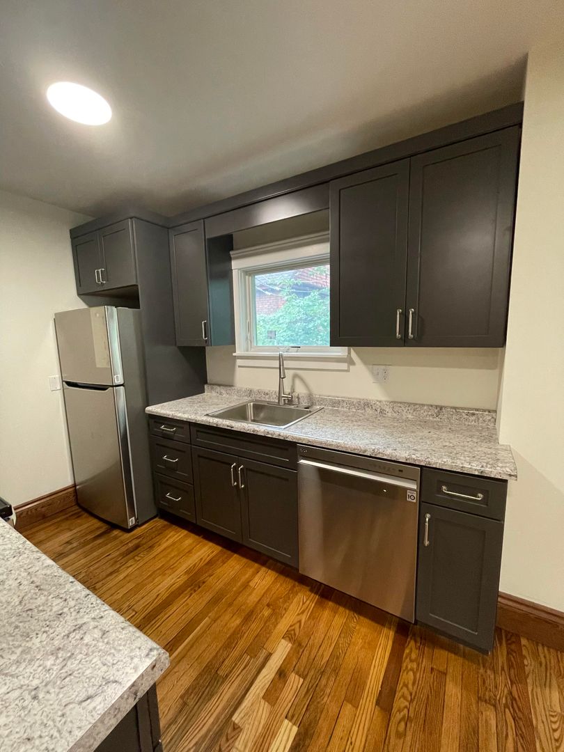 This unit underwent a complete renovation during the summer of 2023 and features three bedrooms, a shared living area, and an updated kitchen and bathroom.