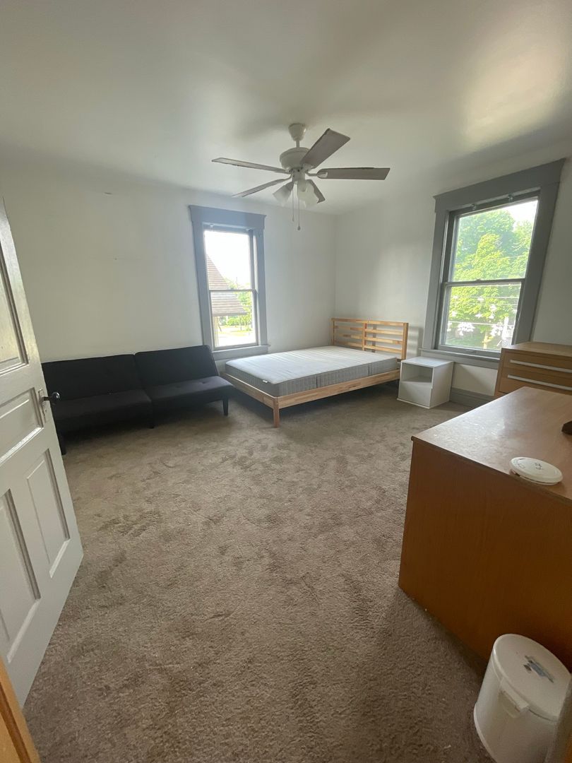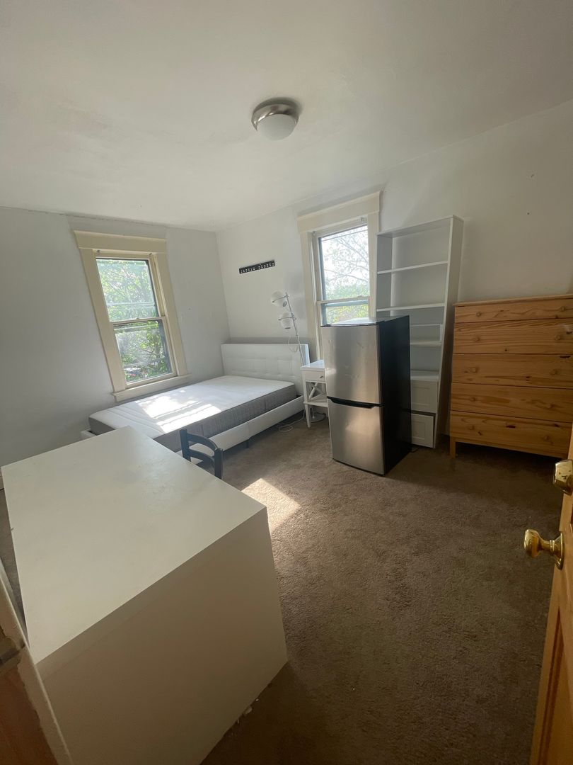 The main floor offers a roomy living area and a welcoming front porch—perfect for relaxing or entertaining. The kitchen is equipped with two fridges and a dishwasher for maximum convenience. All bedrooms comfortably fit a double bed, desk, and dresser. Recent upgrades include a new furnace and central air system for year-round comfort.