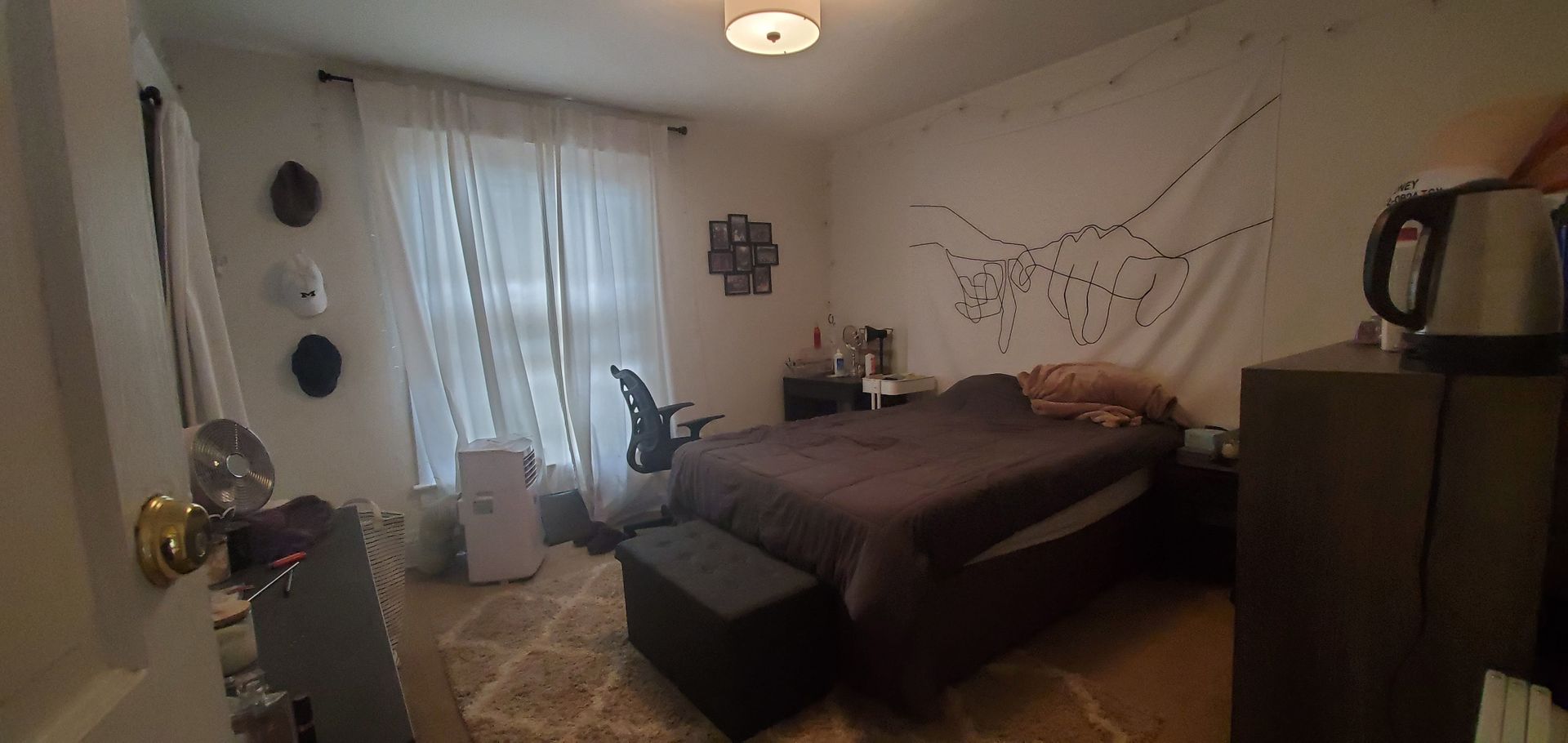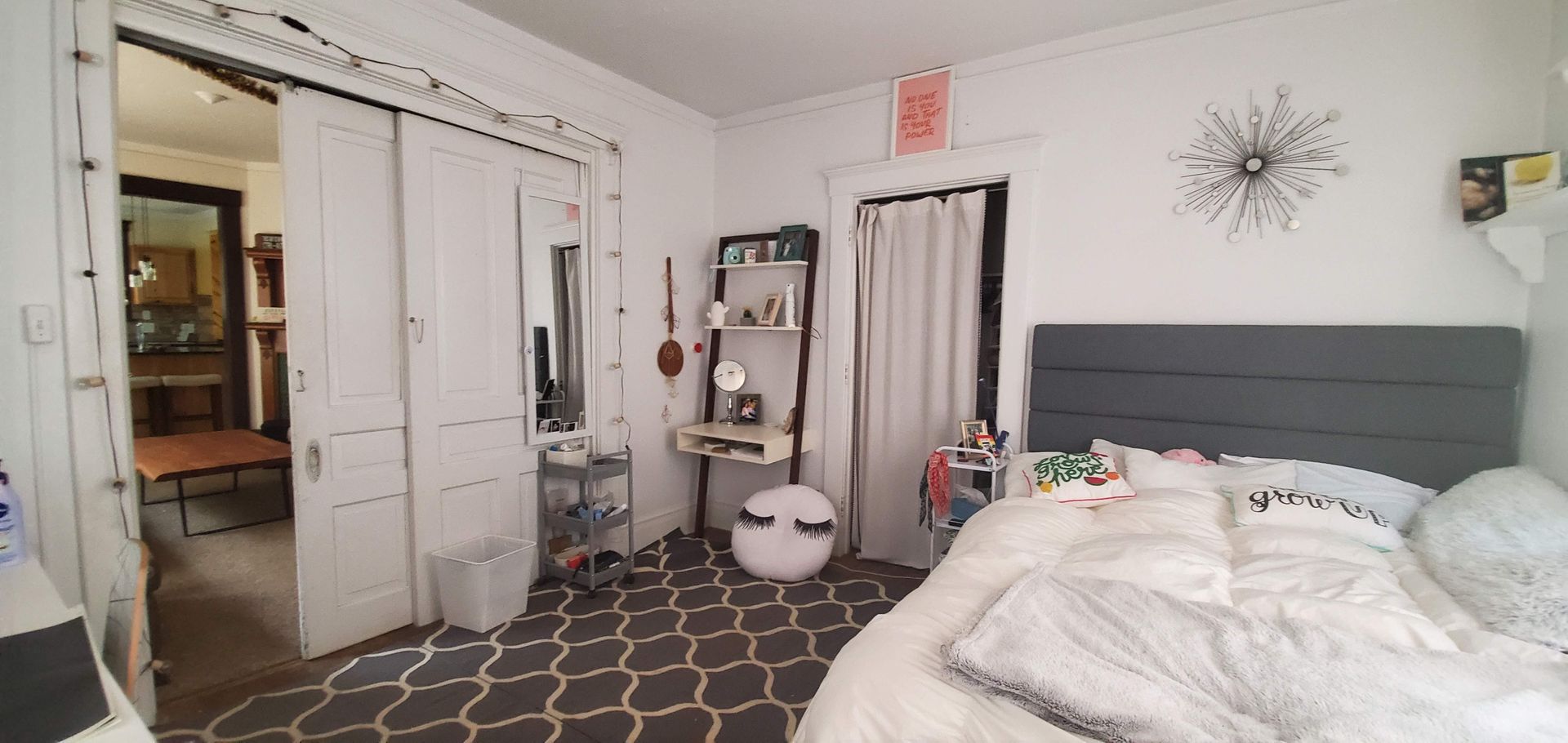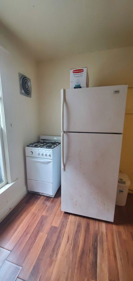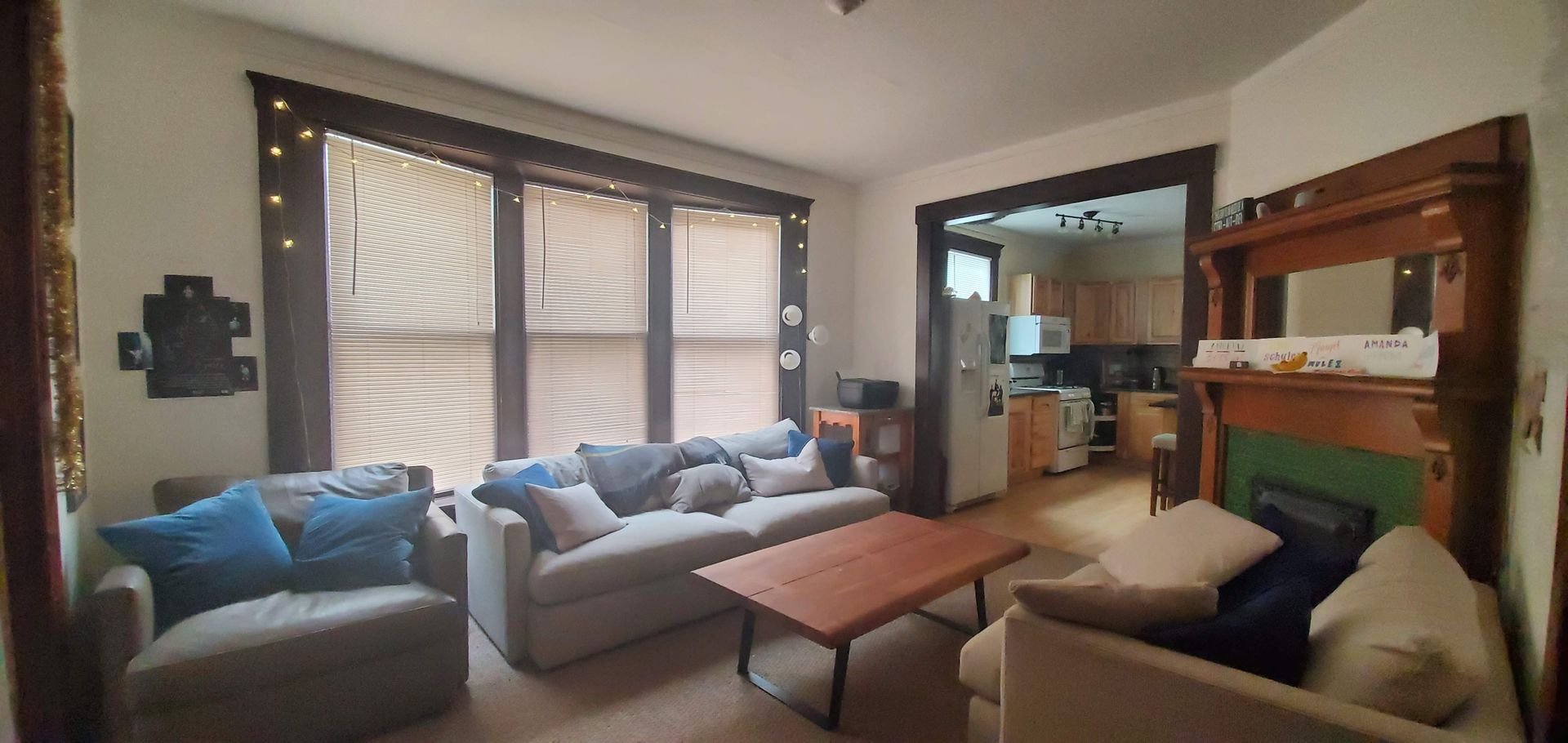 This spacious three-story home features two kitchens and two updated bathrooms, accommodating up to eight people comfortably. The main kitchen has been remodeled with granite countertops and stainless steel appliances. The property includes a large living room on the main floor and an additional spacious family room on the third floor. Amenities include off-street parking, a dishwasher, and laundry facilities.