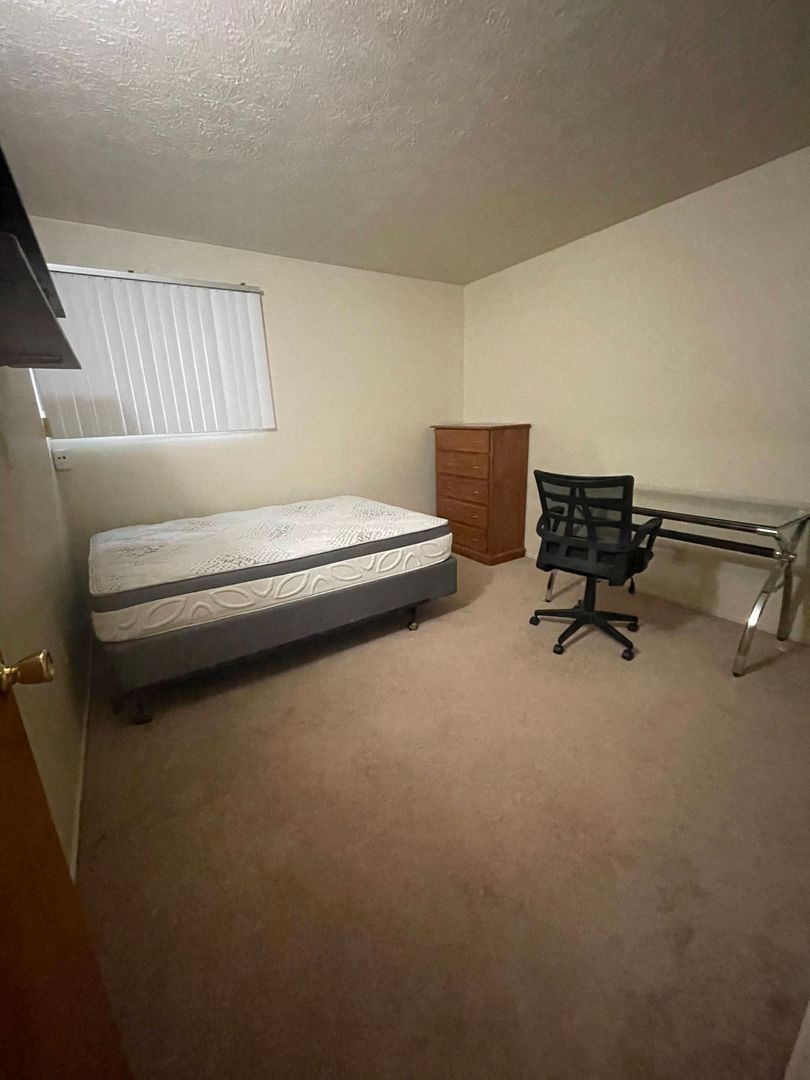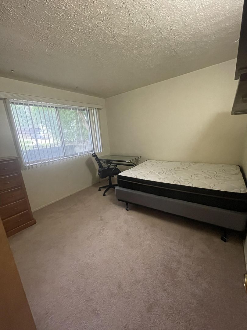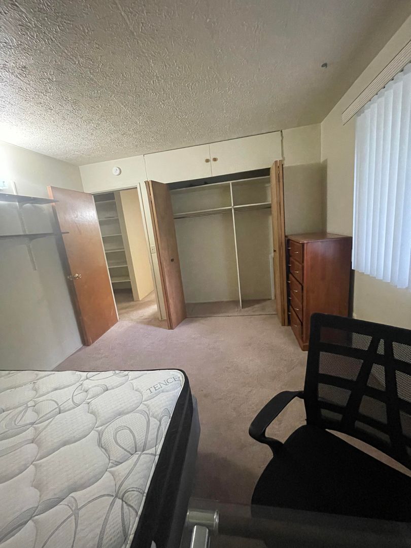 This furnished two-bedroom apartment is located in a secure building just blocks from Central Campus. The unit features a spacious living room and two large bedrooms, offering plenty of comfortable living space.