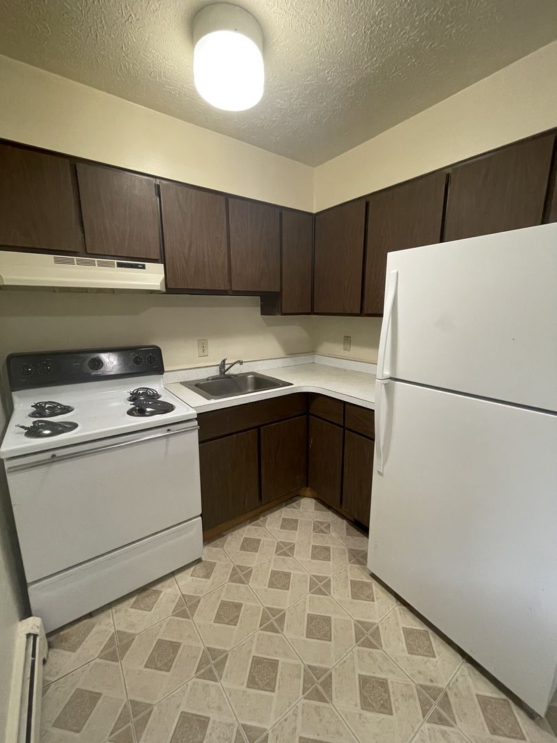Each apartment includes one designated parking space, and on-site laundry is available in the building. Heat and water are included in the rent for added convenience.