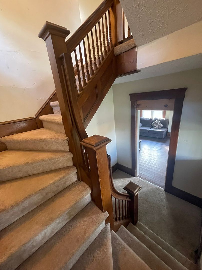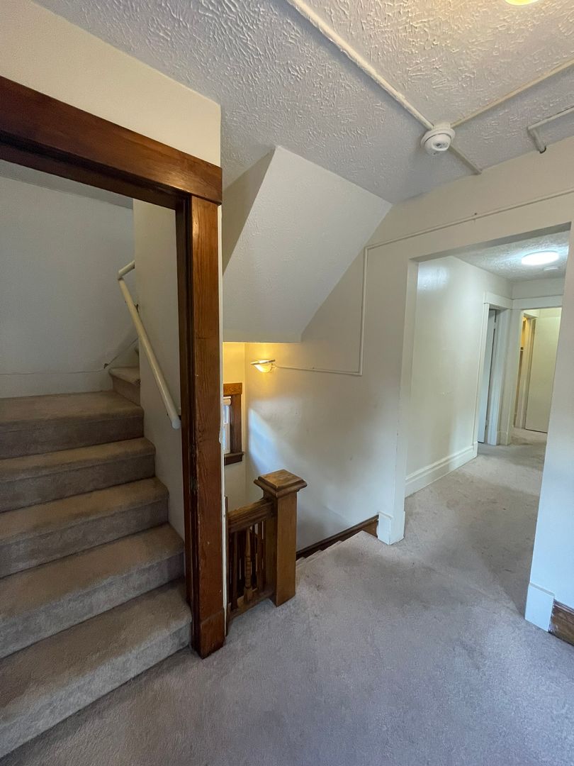This spacious four story seven-bedroom home features a full studio in the basement, complete with its own kitchen and bathroom. Which is attached to the main living areas which include six additional bedrooms, two kitchens, and two bathrooms spread across the first, second, and third floors. Every kitchen and bathroom have been renovated and are in excellent condition. The bedrooms vary in size, from ok-sized to very large. Highlights of the property include a large wraparound front porch, off-street parking, and free laundry, making it an ideal group house!
